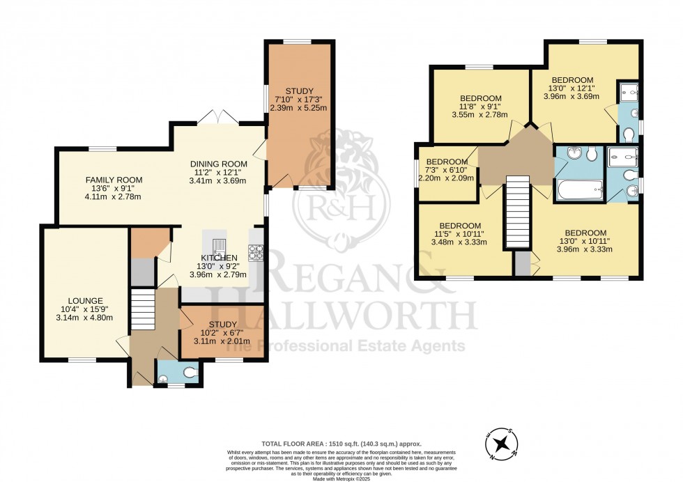 Upstairs, the home provides five bedrooms, four of which are doubles, with a sleek en-suite & fitted wardrobes to the master plus a contemporary principal bathroom. Bed 2 also has its own en-suite.